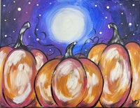 This beginner-friendly class will guide you step-by-step as we bring a pumpkin patch to life under a moonlit sky. Whether you’re brand new to painting or already love to dabble, you’ll leave with a canvas full of charm.