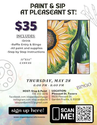GARDEN PRAIRIE, IL: This 21+ paint party combines drinks, art, and bingo! I’ll guide you step-by-step to bring your masterpiece to life.